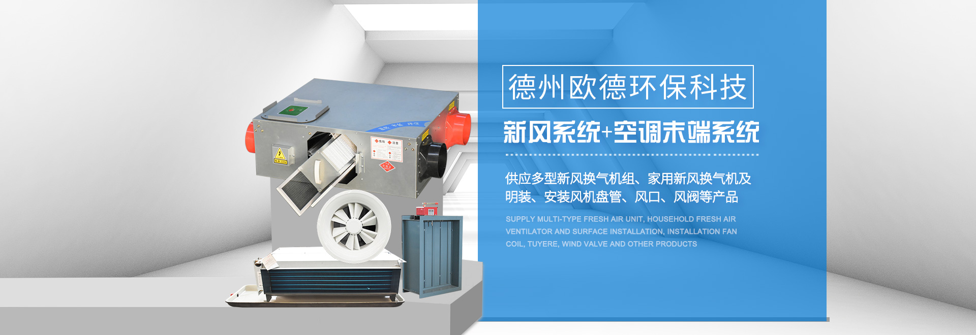 德州歐德環(huán)保科技有限公司位于山東省德州市武城經(jīng)濟(jì)開(kāi)發(fā)區(qū),是一家集空調(diào)設(shè)備產(chǎn)、研、銷相結(jié)合的現(xiàn)代化企業(yè)。歐德以技術(shù)水平、服務(wù)標(biāo)準(zhǔn),贏得客戶的信任。公司建有現(xiàn)代化水平的商用空調(diào)設(shè)備生產(chǎn)線與末端設(shè)備生產(chǎn)線,可定制生產(chǎn)多型空調(diào)設(shè)備。 公司主要產(chǎn)品:風(fēng)機(jī)(排煙風(fēng)機(jī)、軸流風(fēng)機(jī)、邊墻風(fēng)機(jī)、斜流風(fēng)機(jī)(混流風(fēng)機(jī))、屋頂風(fēng)機(jī)、離心風(fēng)機(jī)、誘導(dǎo)風(fēng)機(jī))、新風(fēng)處理機(jī)組、吊頂式空調(diào)器、風(fēng)機(jī)盤(pán)管(臥式暗裝風(fēng)機(jī)盤(pán)管、臥式明裝風(fēng)機(jī)盤(pán)管、立式明裝風(fēng)機(jī)盤(pán)管、卡式風(fēng)機(jī)盤(pán)管等),各類通風(fēng)管道(共板法蘭風(fēng)管、酚醛風(fēng)···